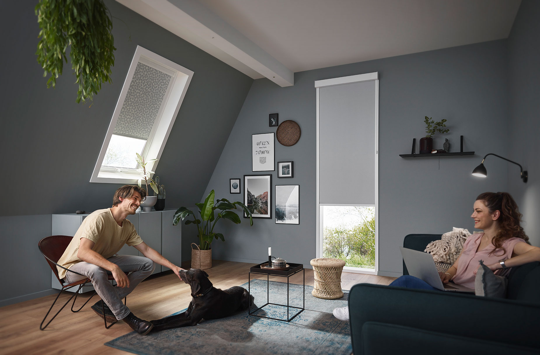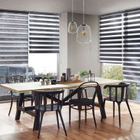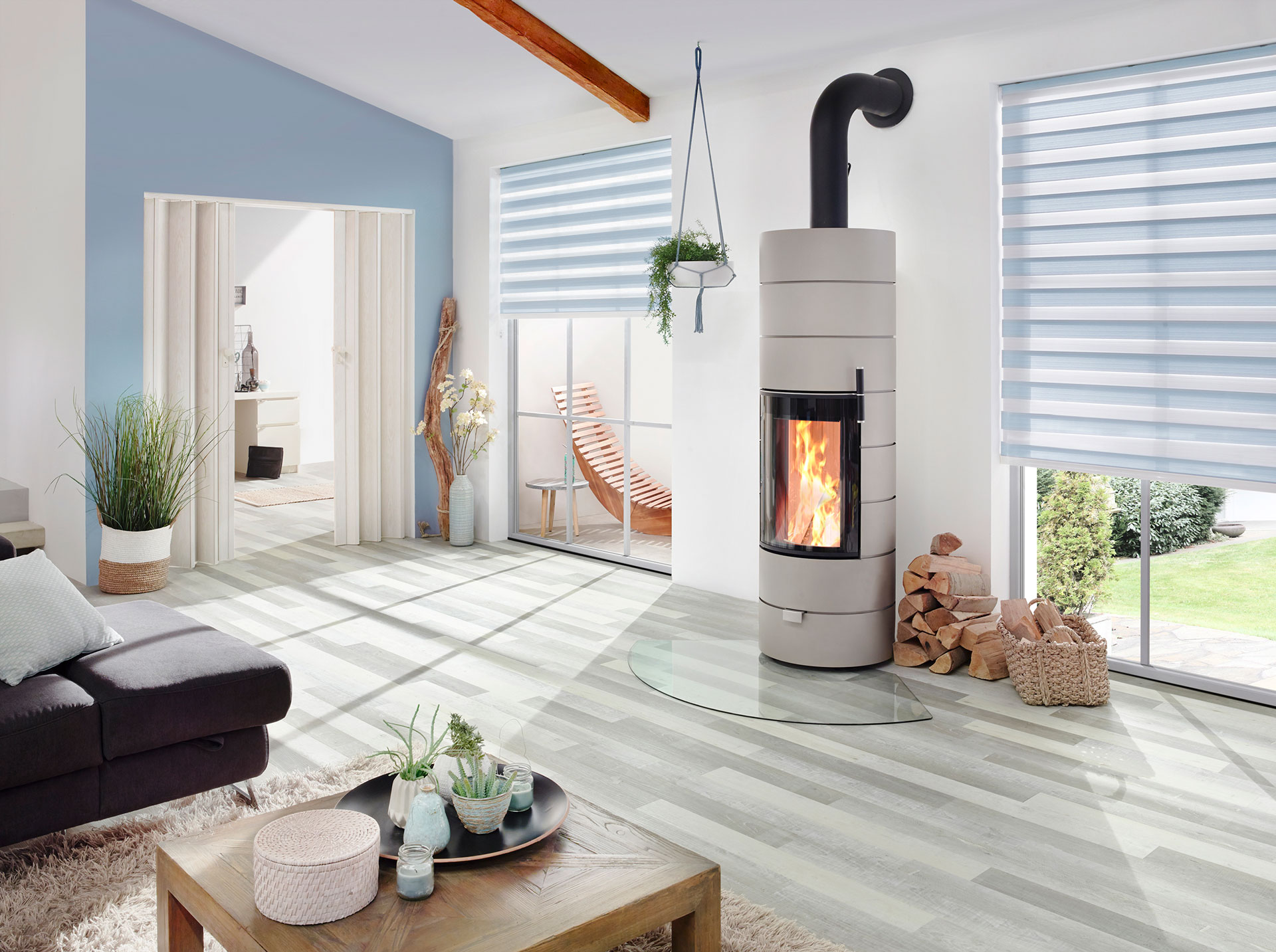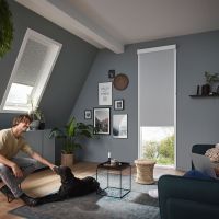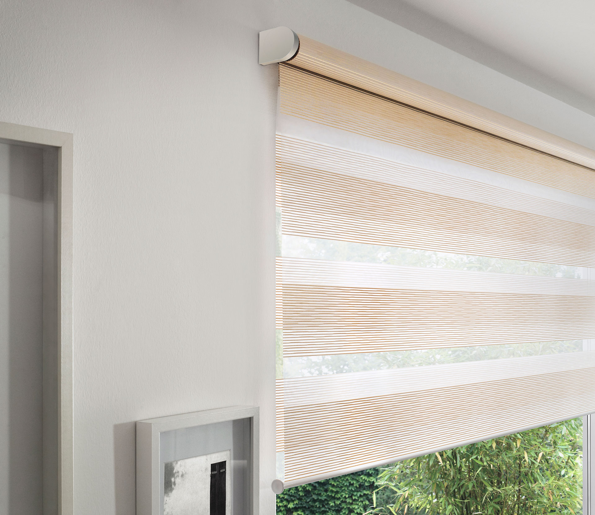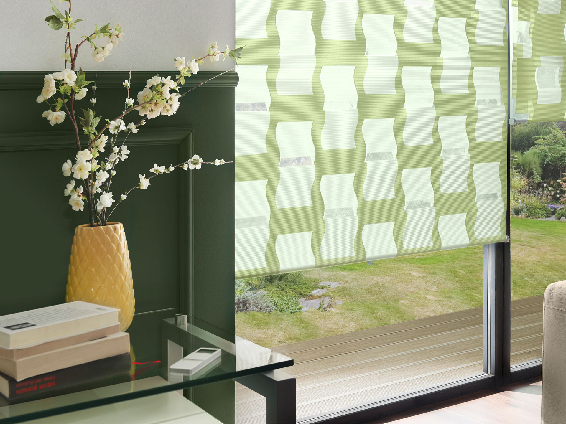Mit dem raffinierten Doppelrollo ist es Ihnen möglich, das Licht im Raum auf eine besondere Weise zu regulieren. Es besteht aus zwei Schichten, die abwechselnd blickdichte und transparente gewebte Streifen haben. Je nach Position der Streifen lenken Sie Licht und Schatten in Ihr Zuhause.