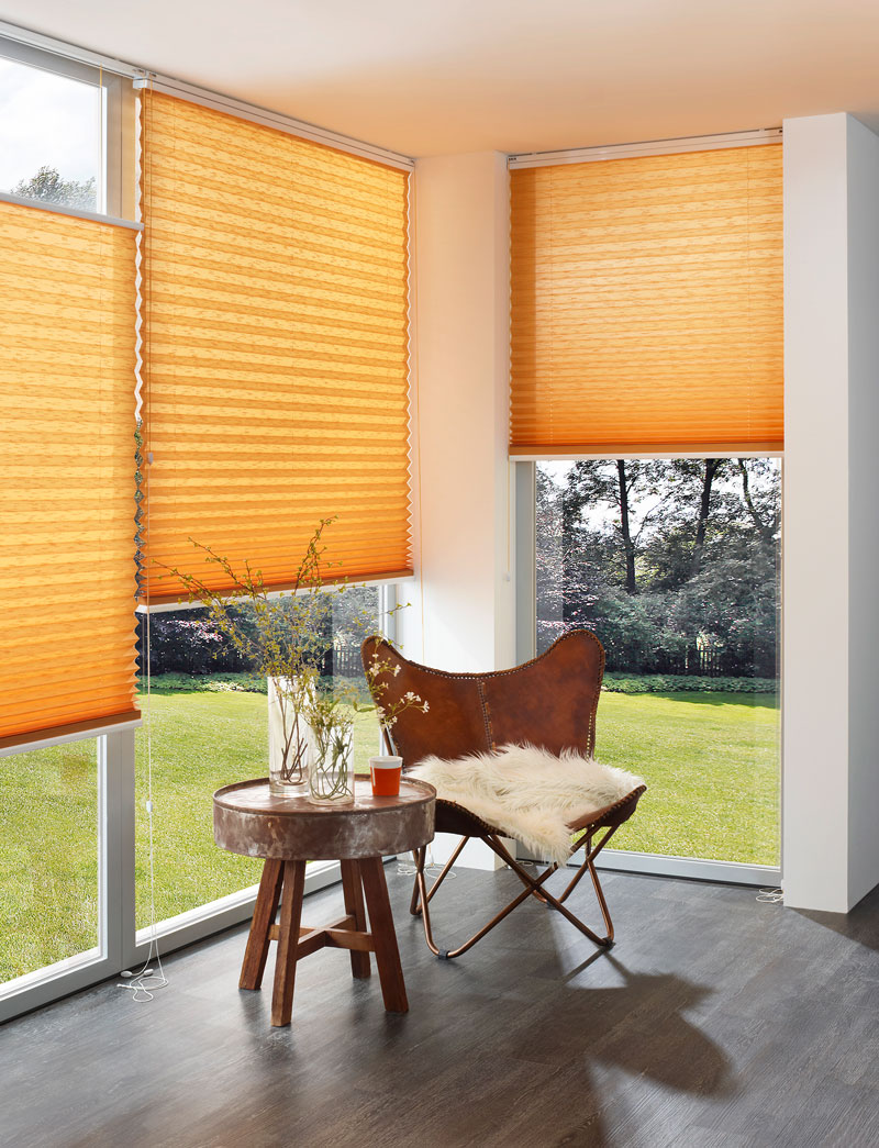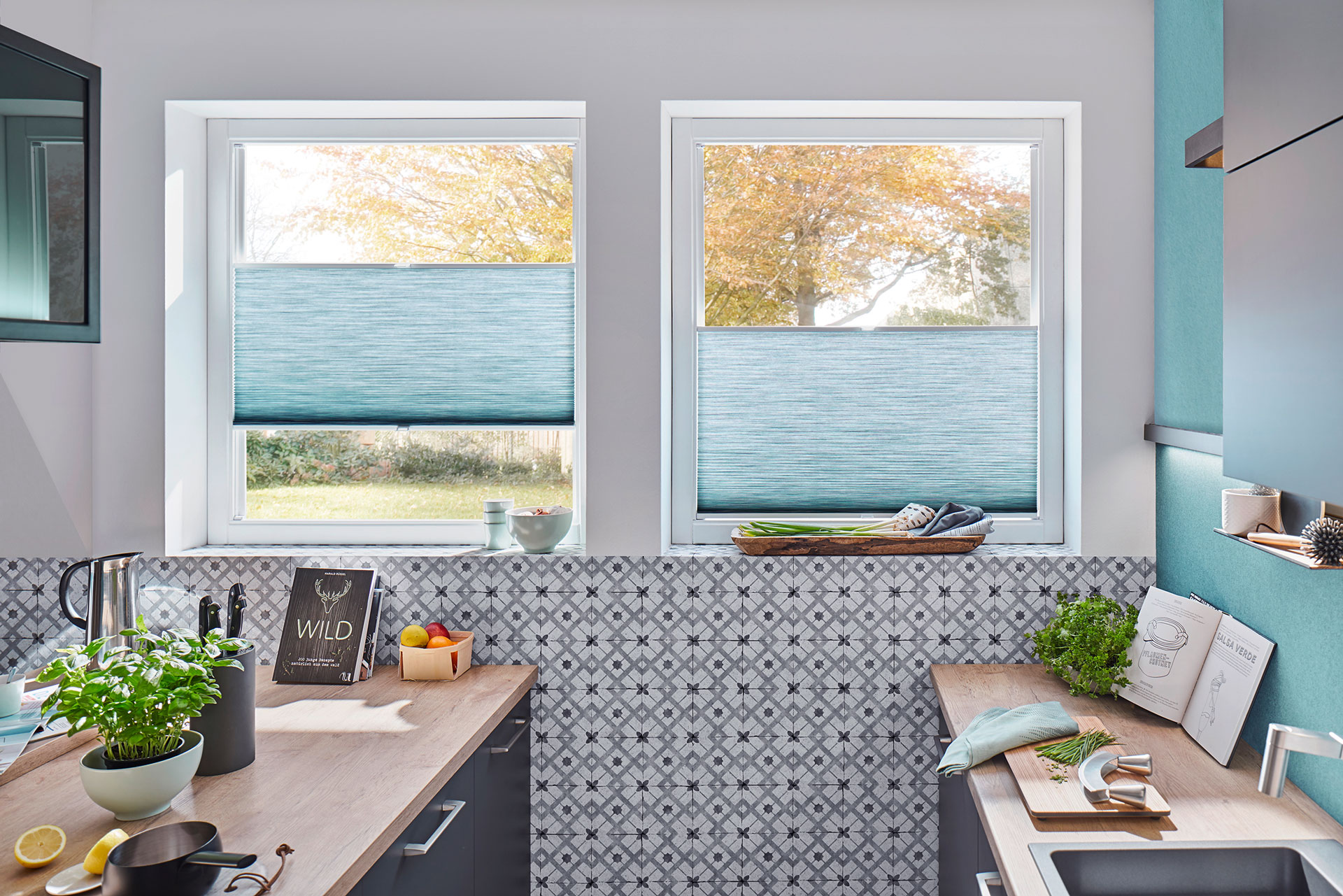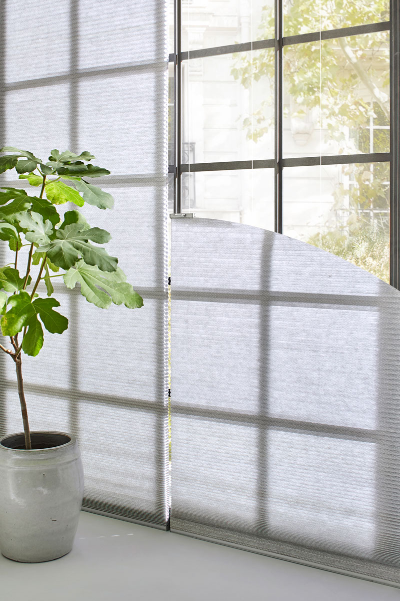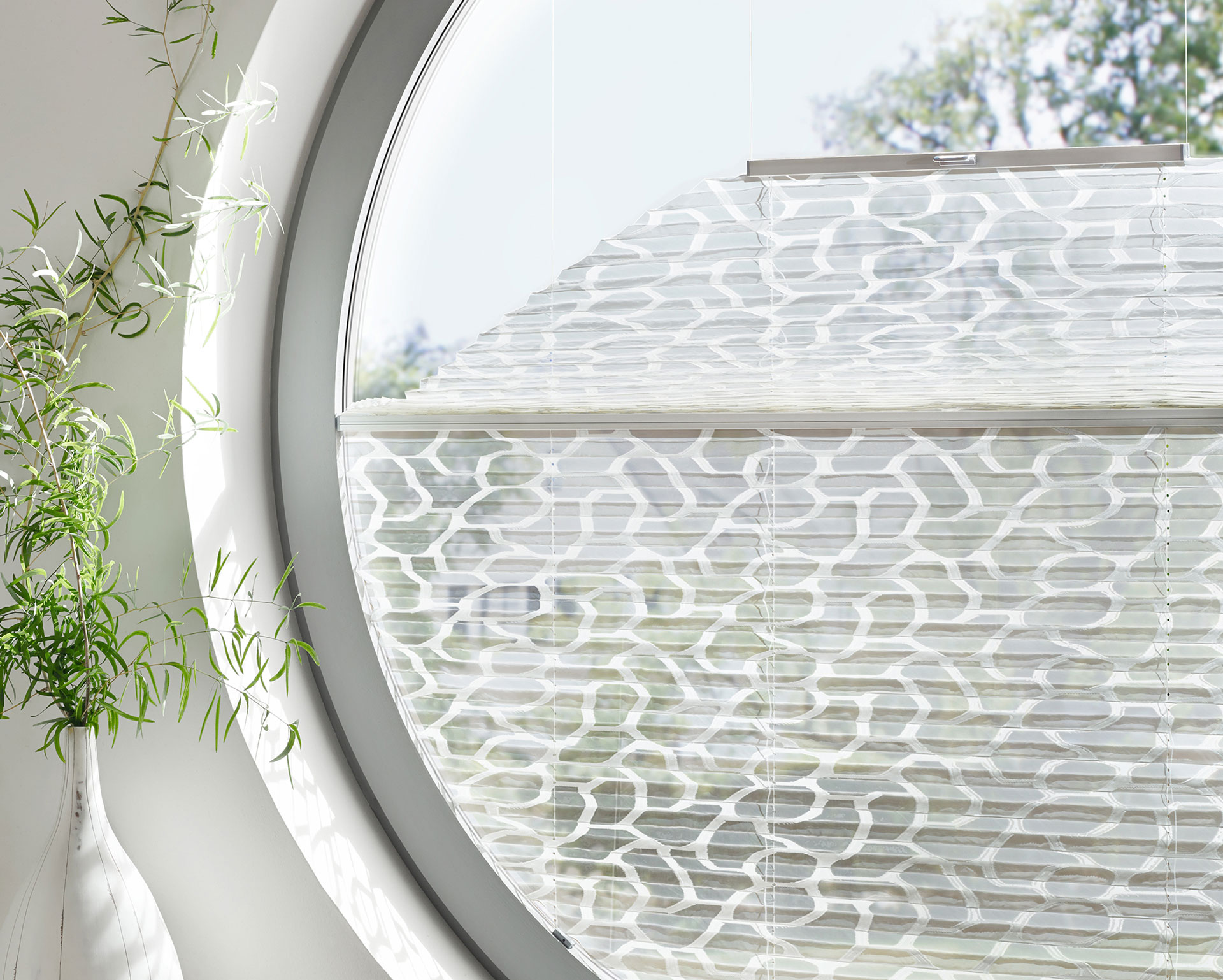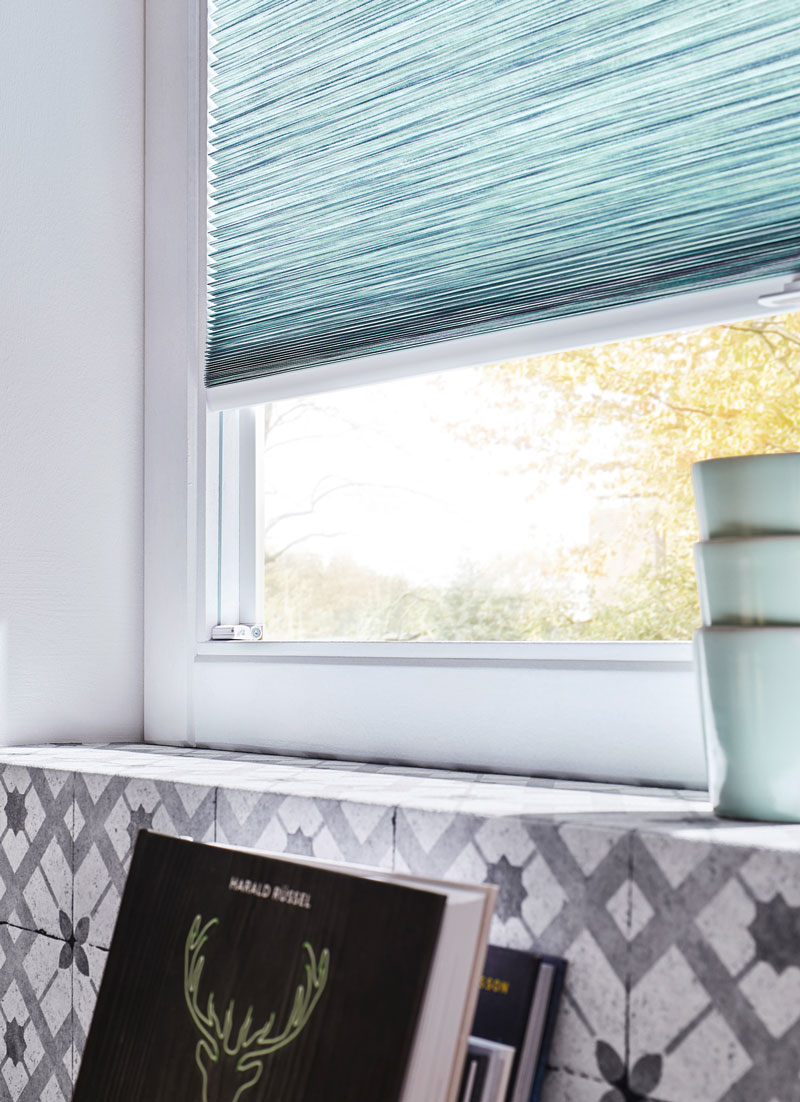 Die Variante Wabenplissee bietet zusätzlich einen Wärme- und Kälteschutz mit Energiesparpotential. Denn im Inneren der Stoffe bildet sich durch die spezielle Faltung eine isolierende Luftschicht.